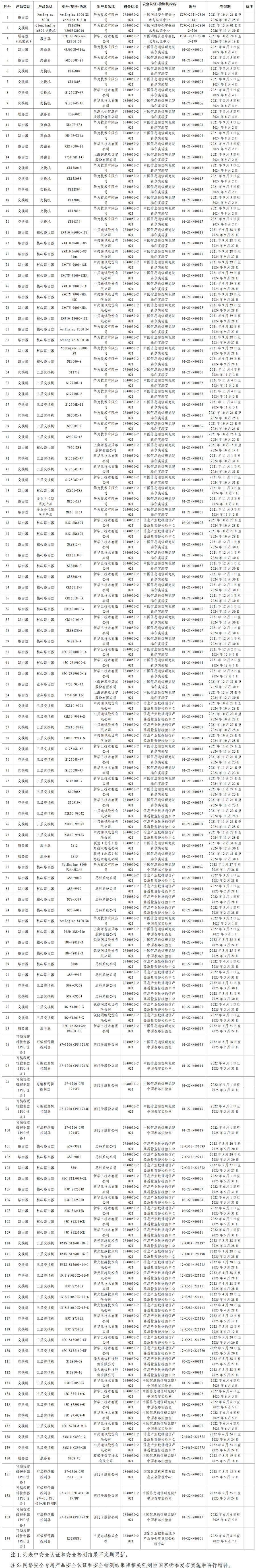 网络关键设备和网络安全专用产品安全认证和安全检测结果